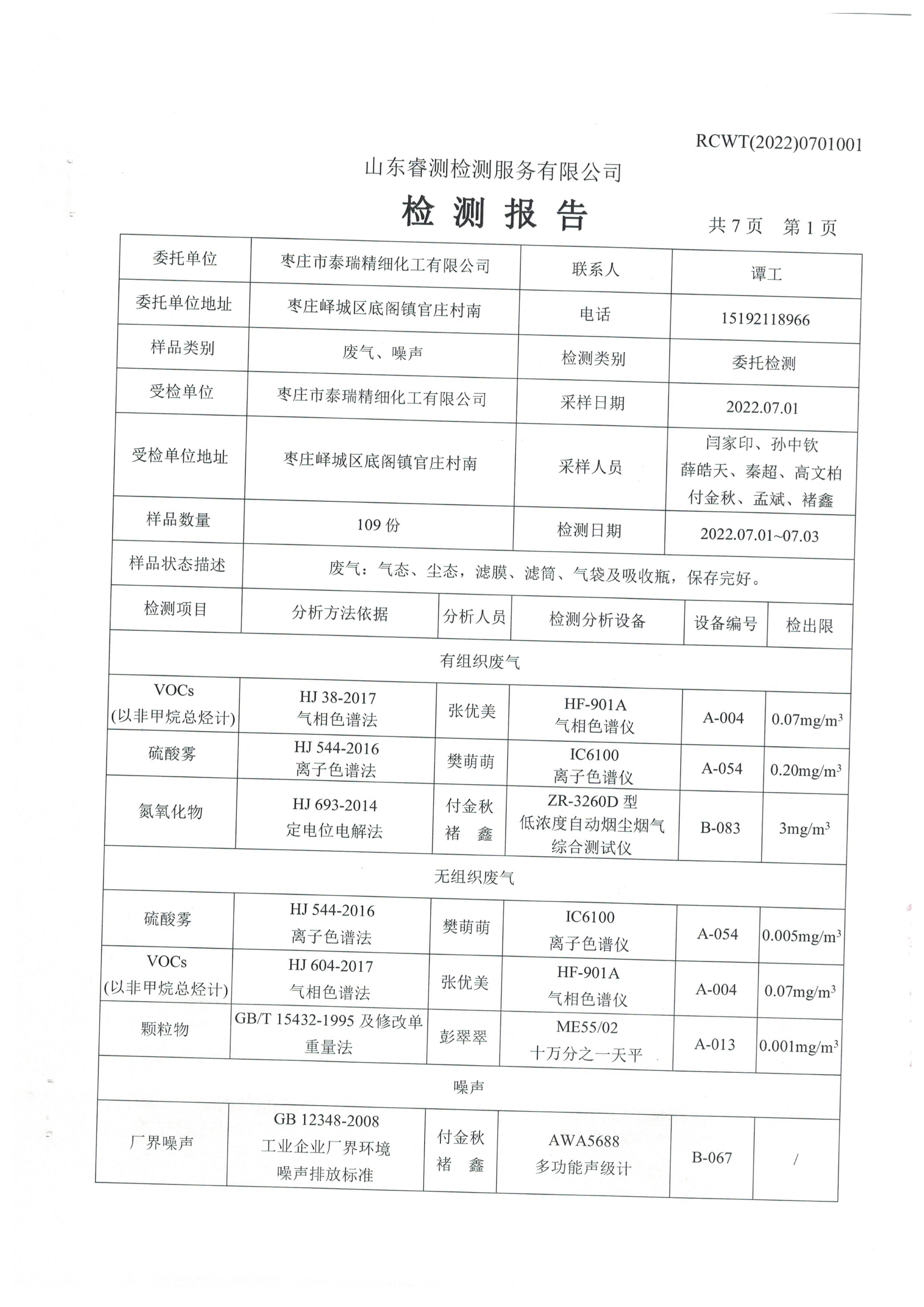 2022年第三季度檢測(cè)報(bào)告
