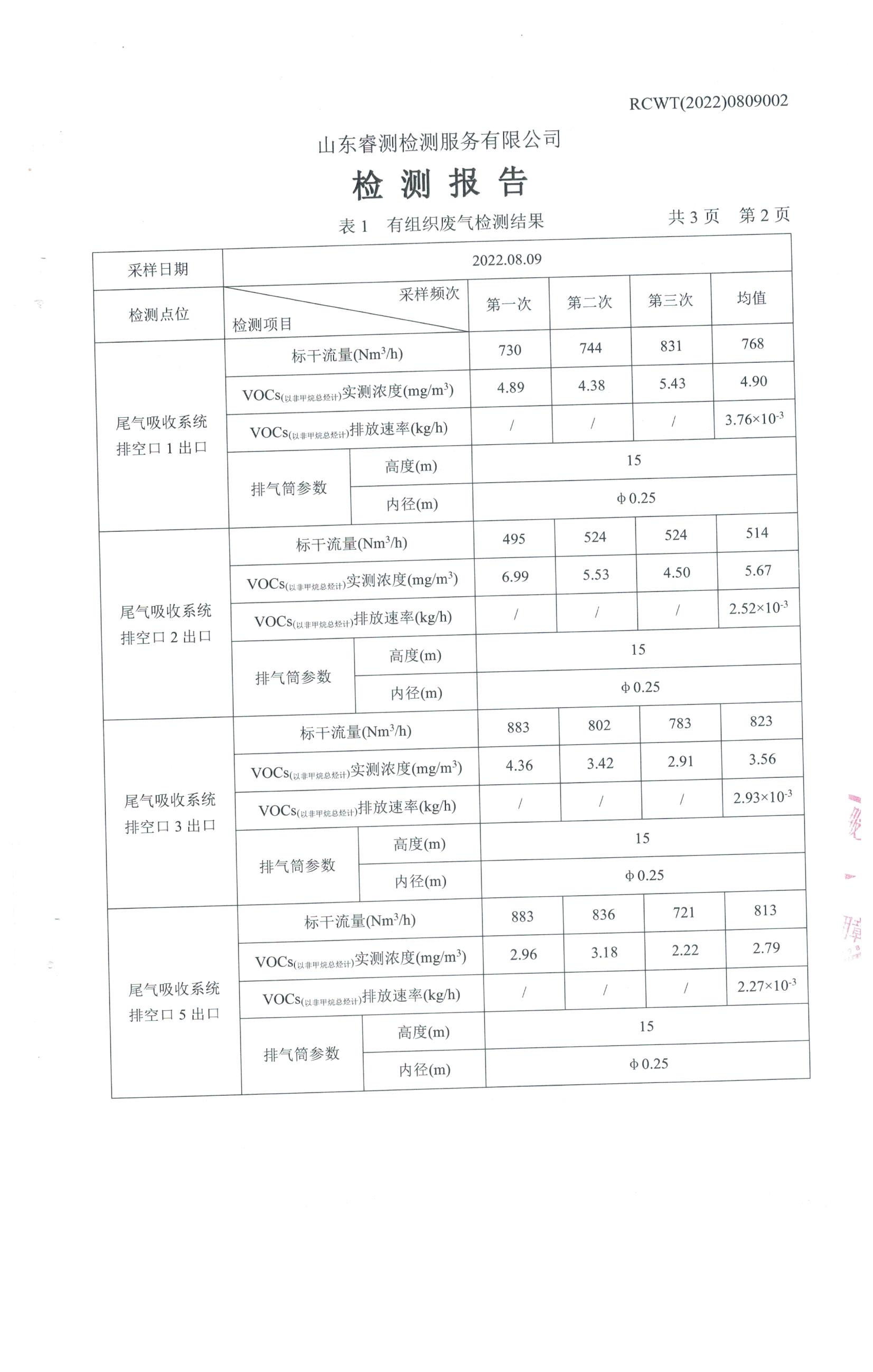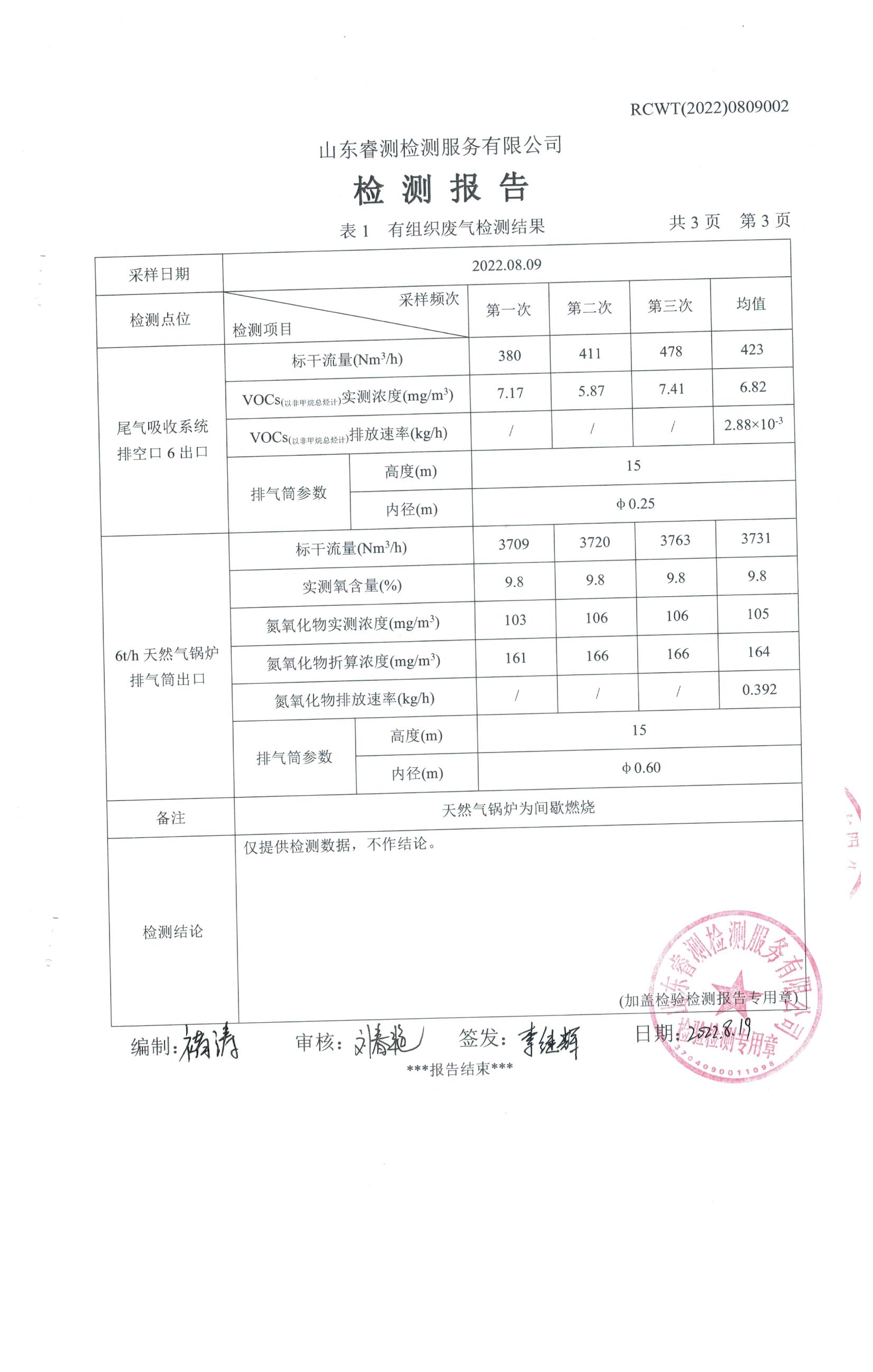 2022年8月份自行檢測(cè)報(bào)告