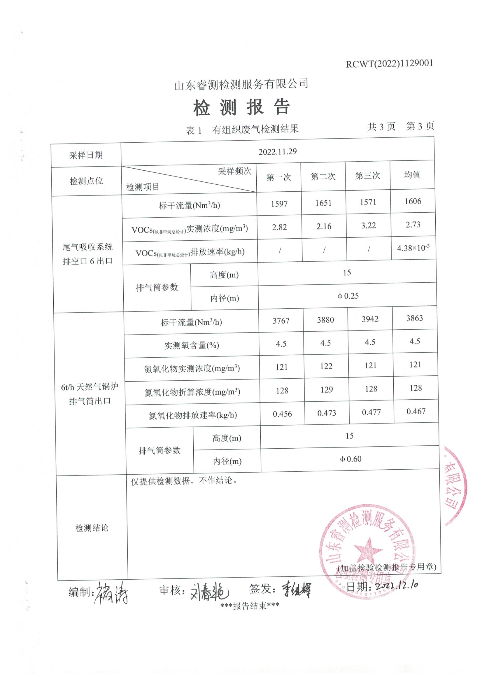 2022年11月份自行檢測報(bào)告