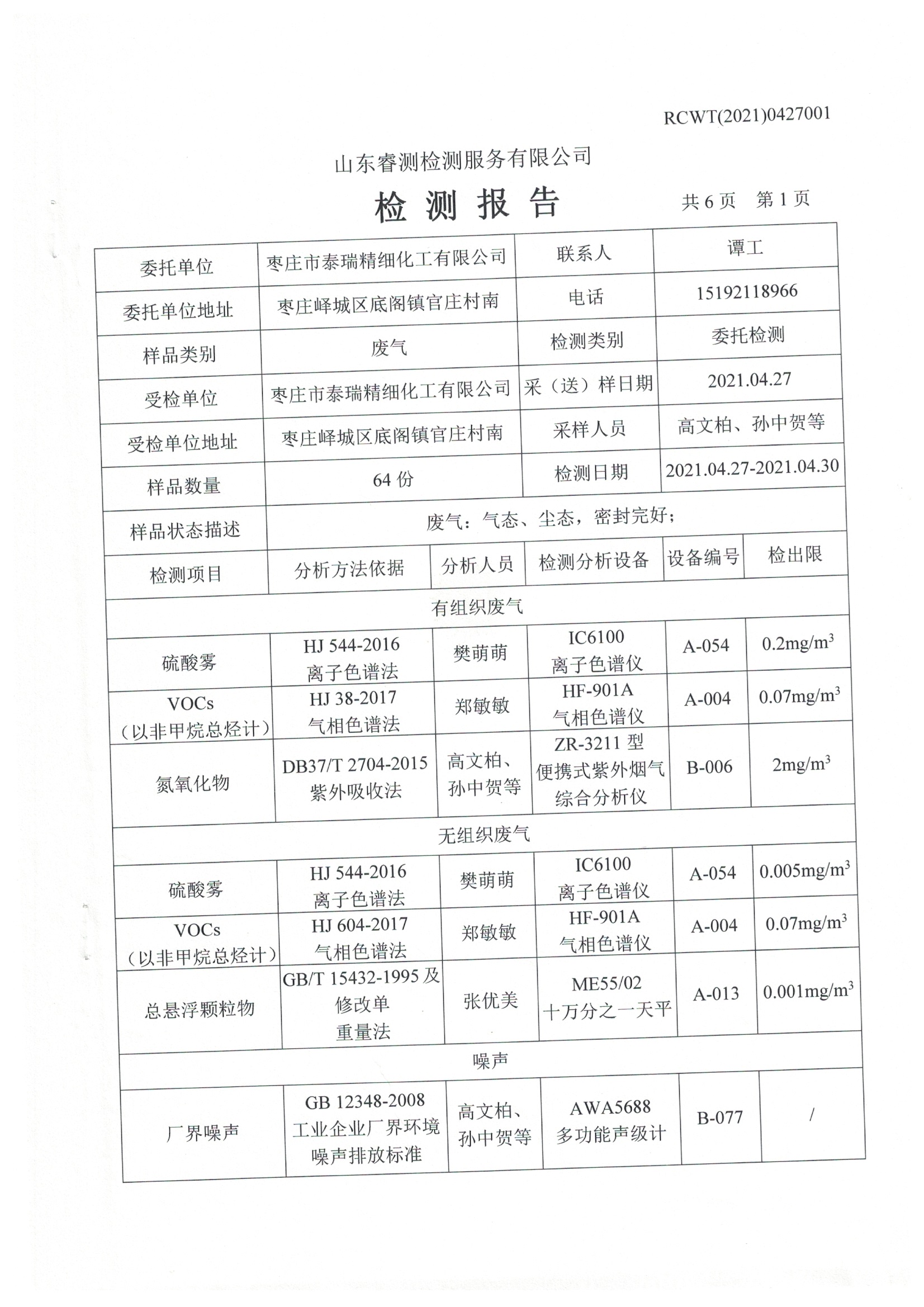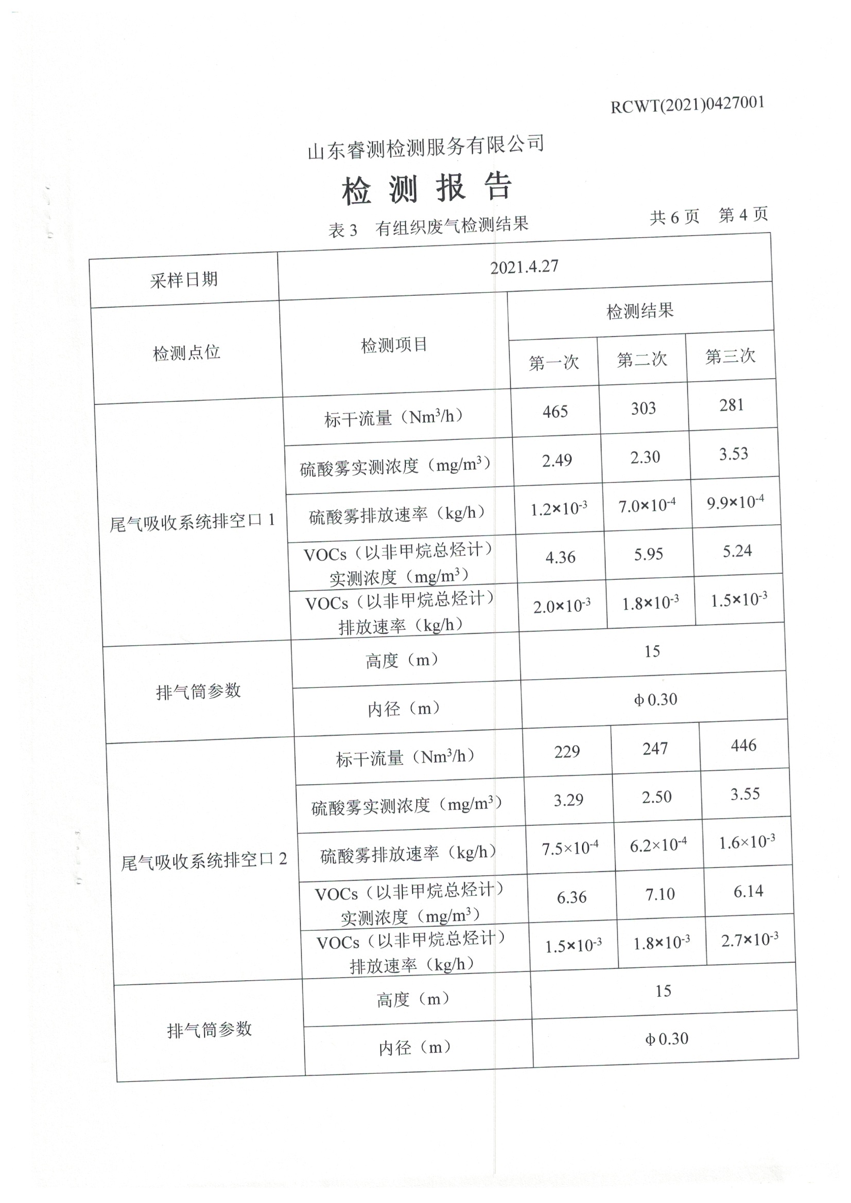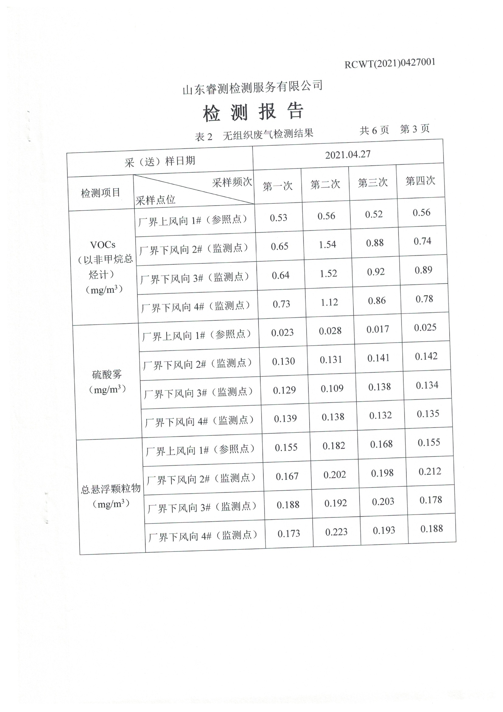 2021年4月份及季度自行檢測報告