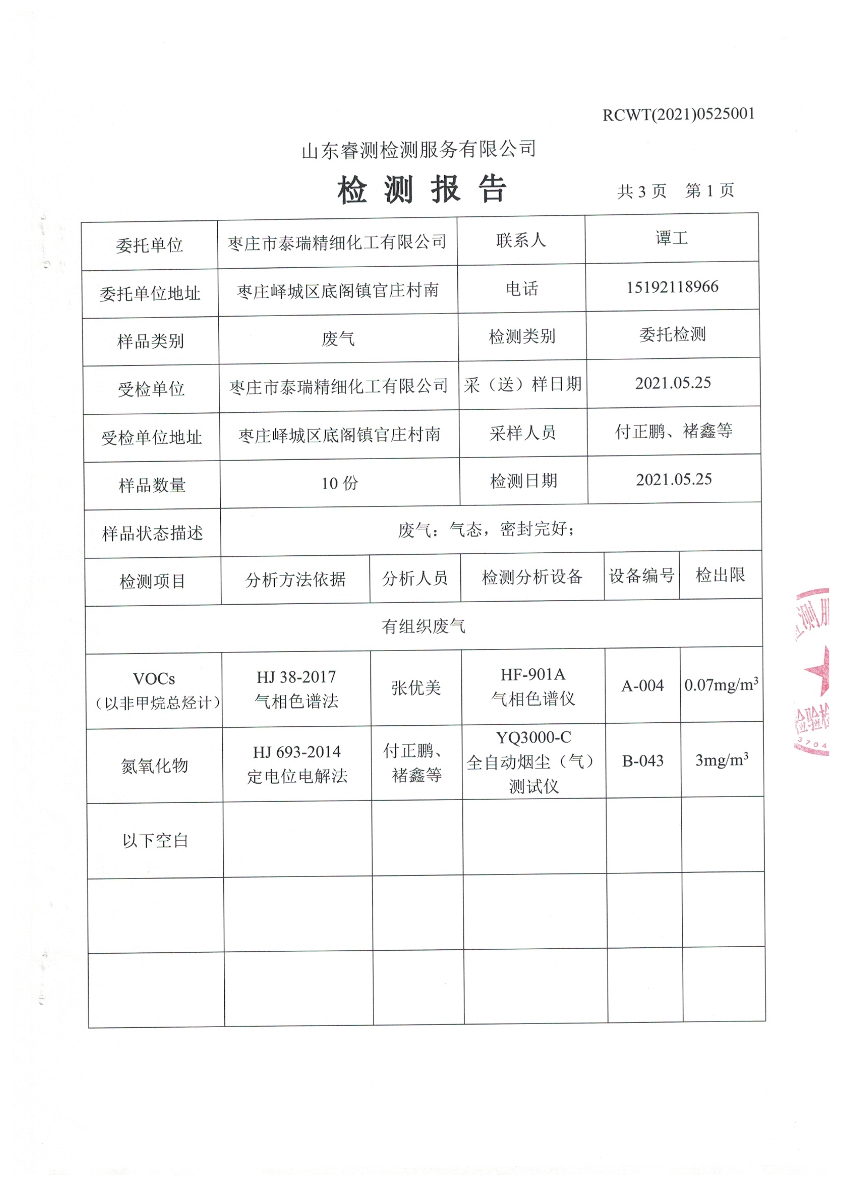 2021年5月份自行檢測報告