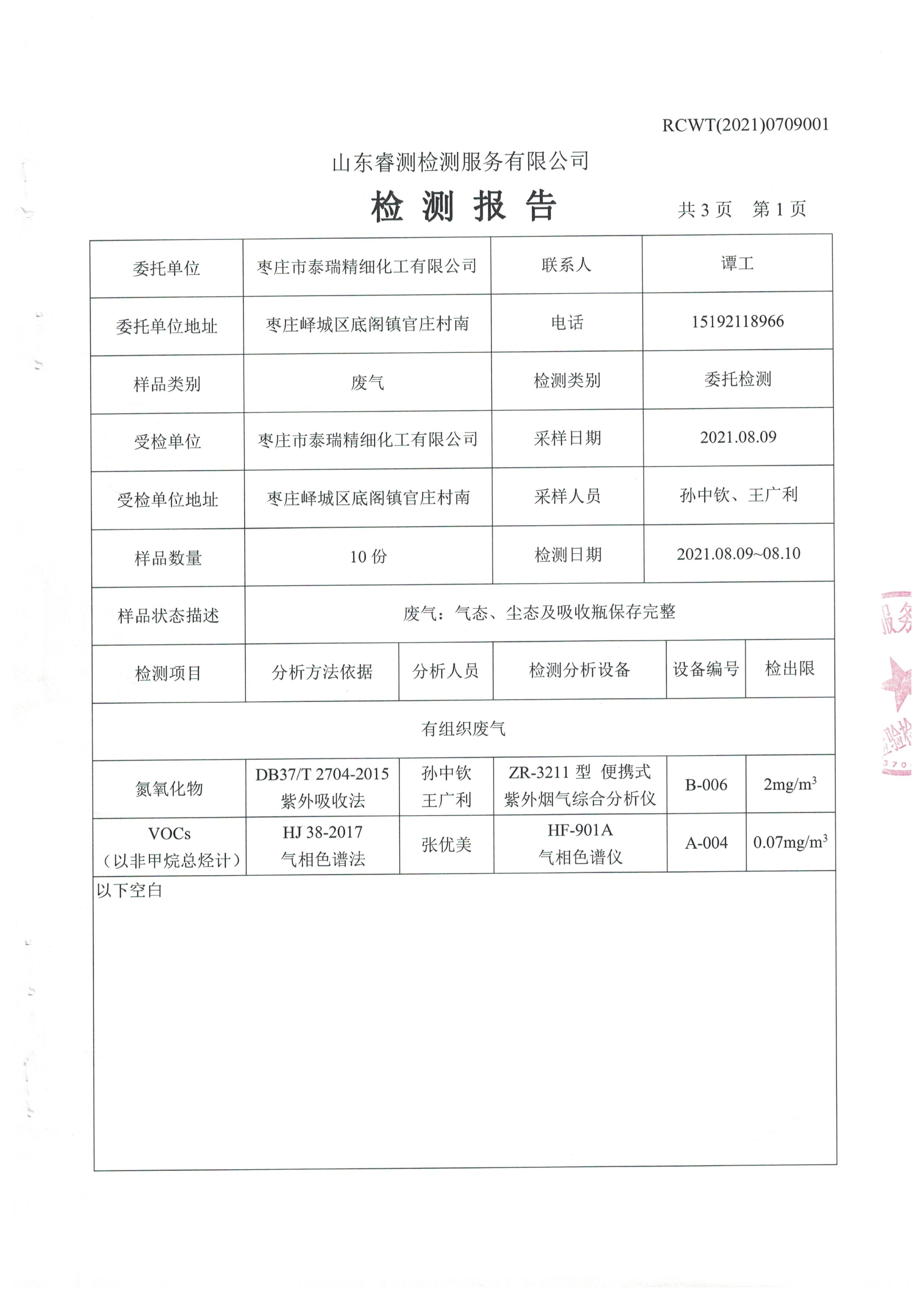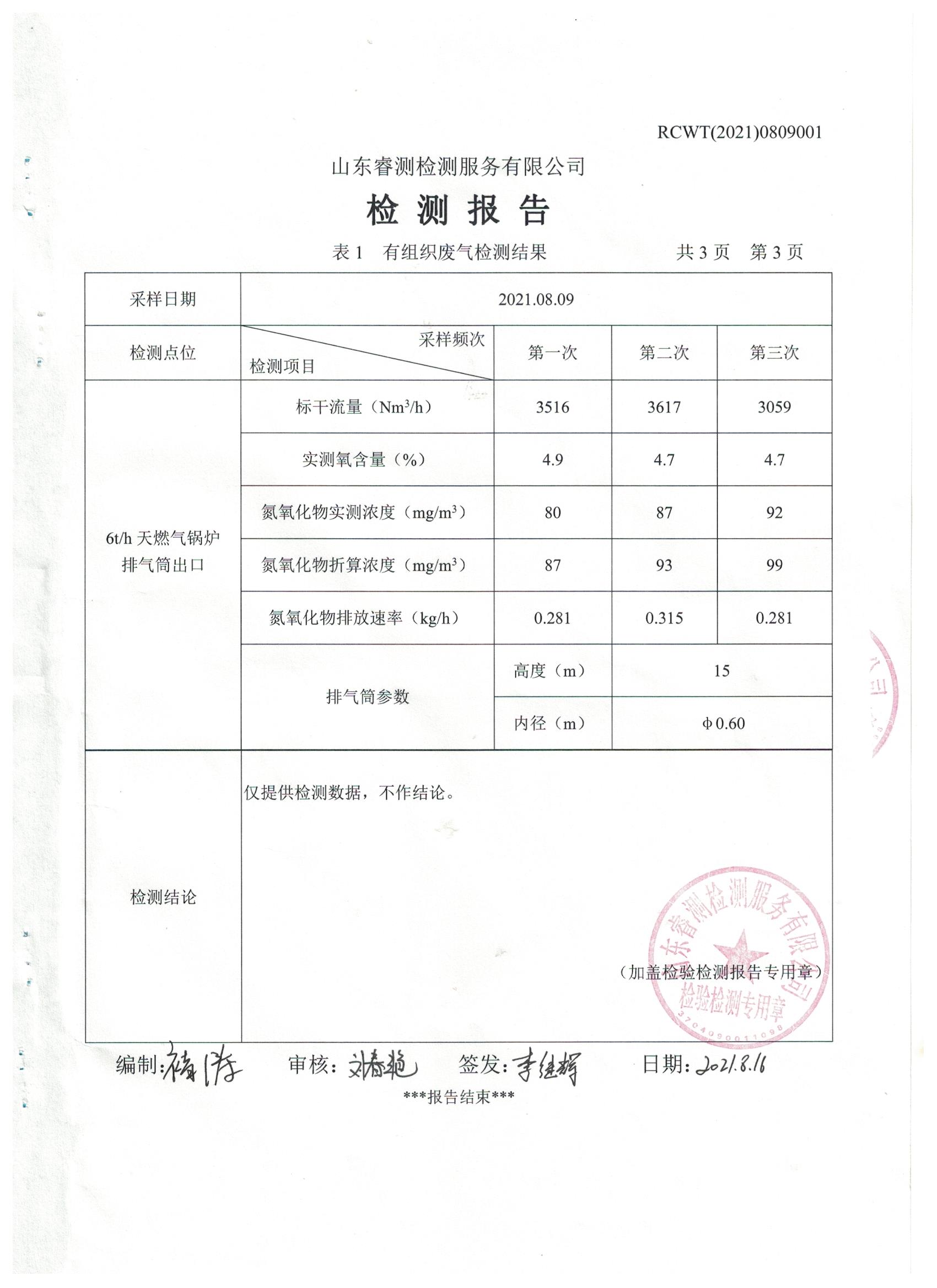 2021年8月份自行檢測報告