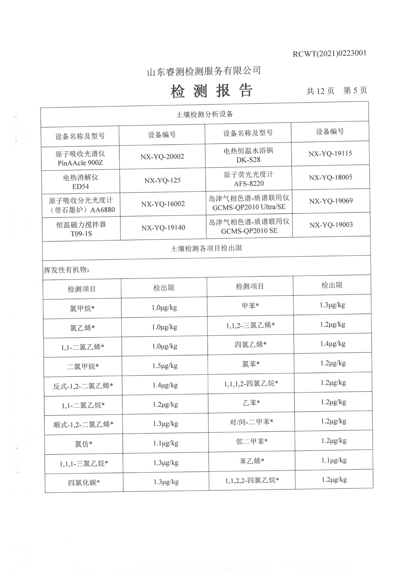 2021年土壤和地下水自行檢測(cè)報(bào)告