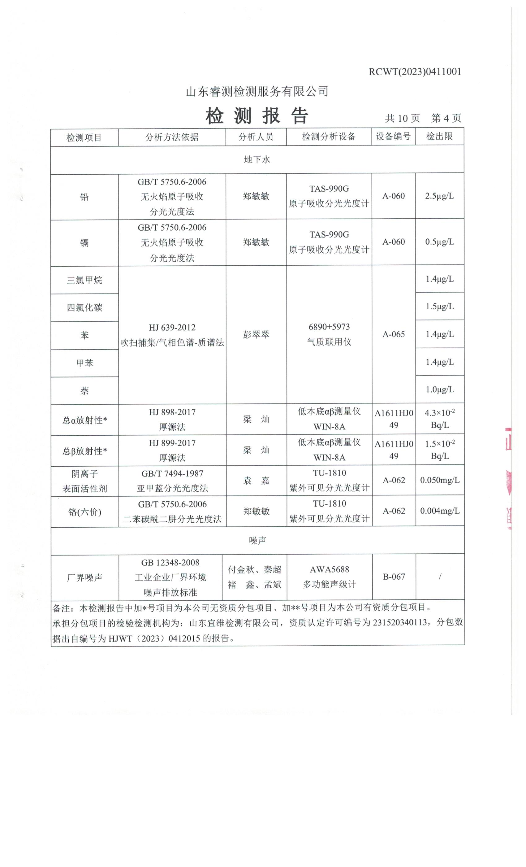 當(dāng)前位置:首頁>新聞中心>公司動態(tài)>2023年第2季度(4月份)檢測報(bào)告
